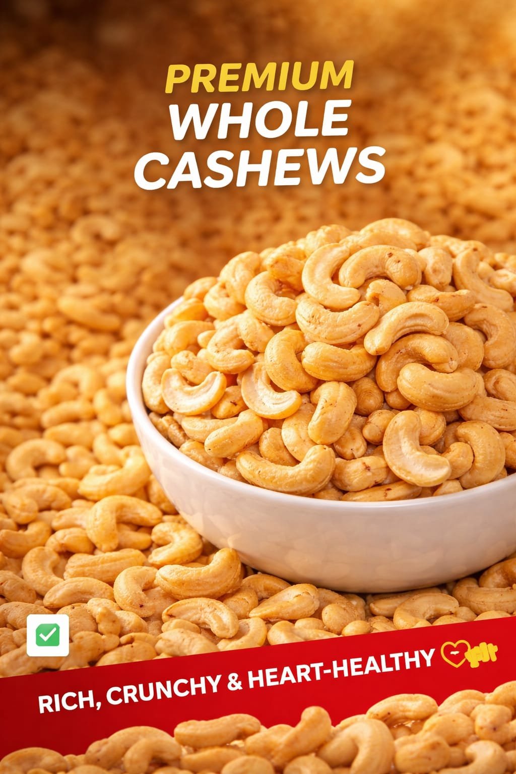 Premium quality whole cashews, crunchy and naturally rich in flavour.